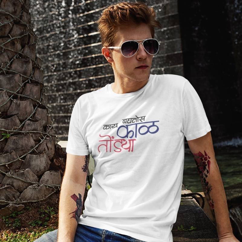 Kay Baghtos Marathi Quotes Printed Tshirt