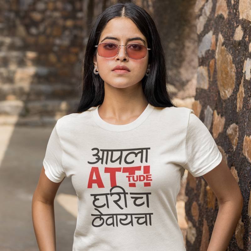 Aapla Attitude Gharich Thevaicha Marathi Quotes Printed Tshirt