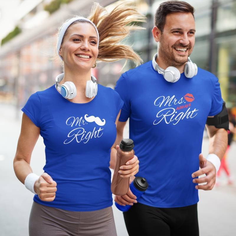 Mr. Right Mrs. Always Right Couple Quotes Printed Tshirt