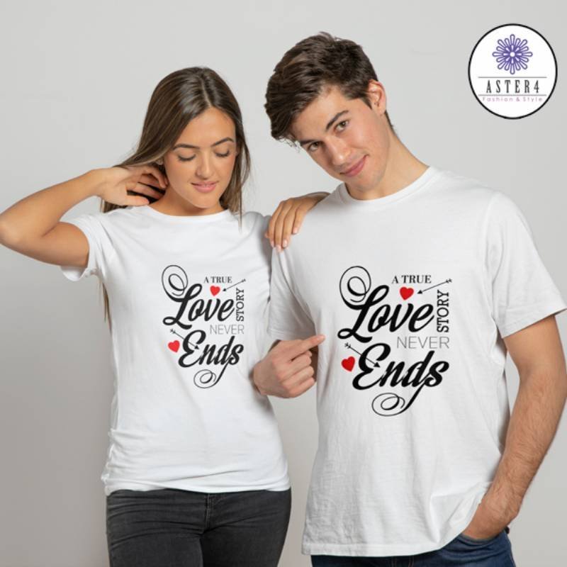 A True Love Story Never Ends Couple Quotes Printed Tshirt